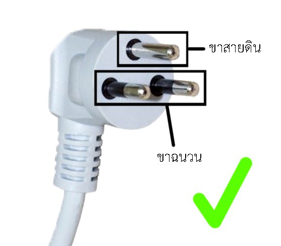 จะต้องมีฉนวนยางหุ้ม 2 ขา และ สายดิน 1 ขา เพื่อป้องกันกระแสไฟฟ้า และ เต้ารับกับตัวปลั๊กต้องเสียบได้พอดี ไม่แน่นหรือหลวม